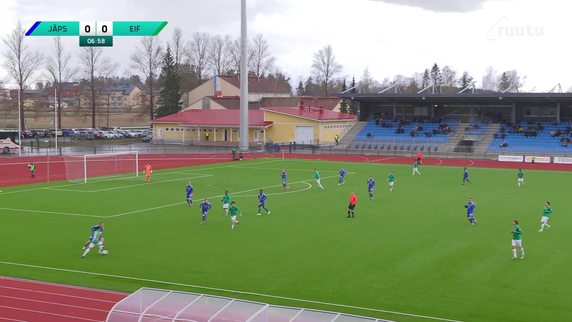 Ottelun ensimmäinen vaarallinen tilanne nähtiin seitsemännellä minuutilla, kun Oscar Dahlfors lähetti Aleksi Ristolaa karkuun EIF:n puolustuslinjan selustaan. Dylan Maes ehti kuitenkin väliin oikein ajoitetulla liukutaklauksella. Hetkeä myöhemmin toisessa päässä David Agbo pääsi laukomaan rangaistusalueen sisältä, mutta yritys suuntautui takatolpan ohitse.